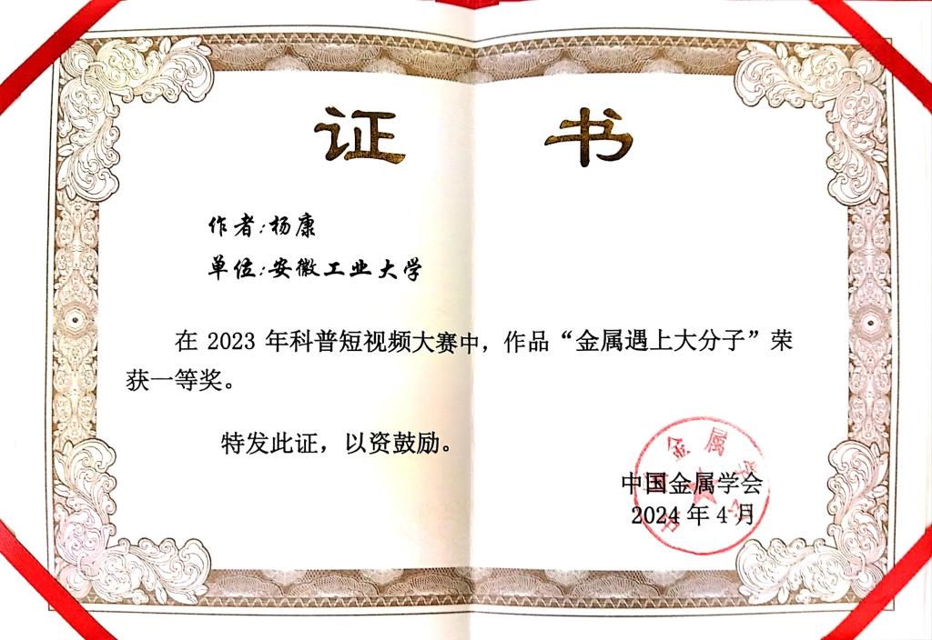 杨康老师的作品《金属遇上大分子》科普视频链接如下://mp.weixin.qq.com/s/A0px4m1lba7tmW_YFPpyvw