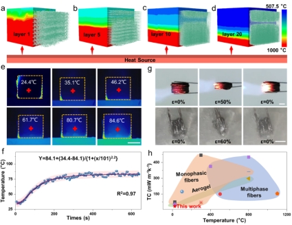 研究表明,基于超薄多层结构设计形成的热阻效应使制备的材料在极寒(-196 ℃)和极热(1300 ℃)环境中均能展现出优异的静动态隔热性能。