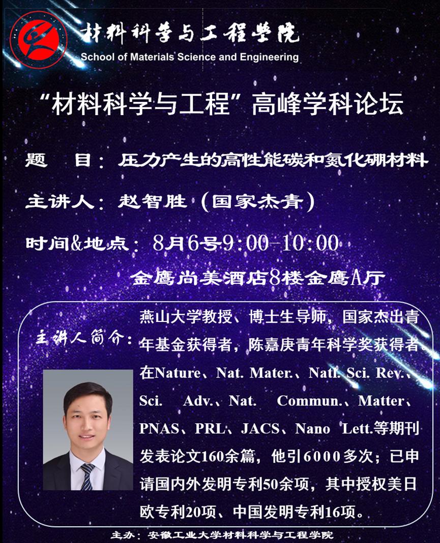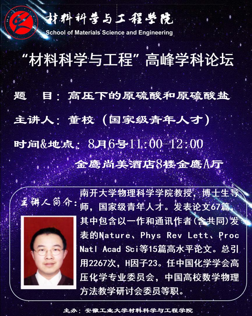 “足球直播平台” 高峰学科论坛——高压科学与新材料