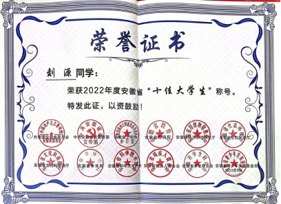 2022年度安徽省十佳大学生(刘源) |