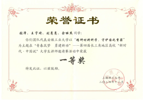 本硕博宣讲团队获长三角“新时代·中国说”大学生讲师赛一等奖,并获最佳人气团队和优秀组织奖;连续两年获安徽省职业规划大赛一等奖。