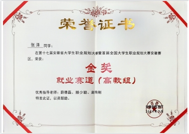 第十七届安徽省大学生职业规划大赛一等奖(张泽) |