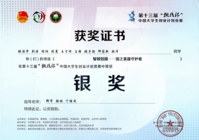 第十三届“挑战杯”中国大学生创业计划竞赛银奖(张浩洋等) |