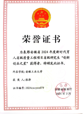 安徽省研究生“创新创业之星”(张泽) |