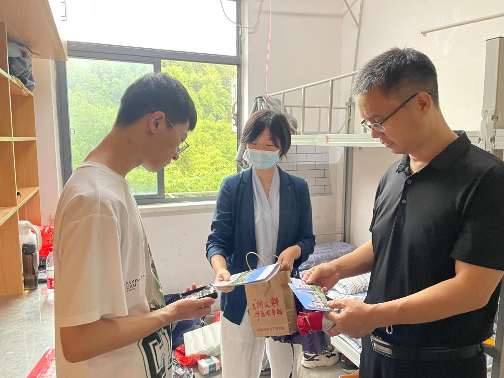 走访过程中,老师们悉心询问了新生的住宿、学习、饮食以及家庭等情况,与同学们进行亲切交谈。季爱华对新生的到来表示热烈欢迎,他叮嘱新生要尽快适应大学生活、融入新环境,建立良好的人际关系。老师们也向同学们传达了学校、55足球直播