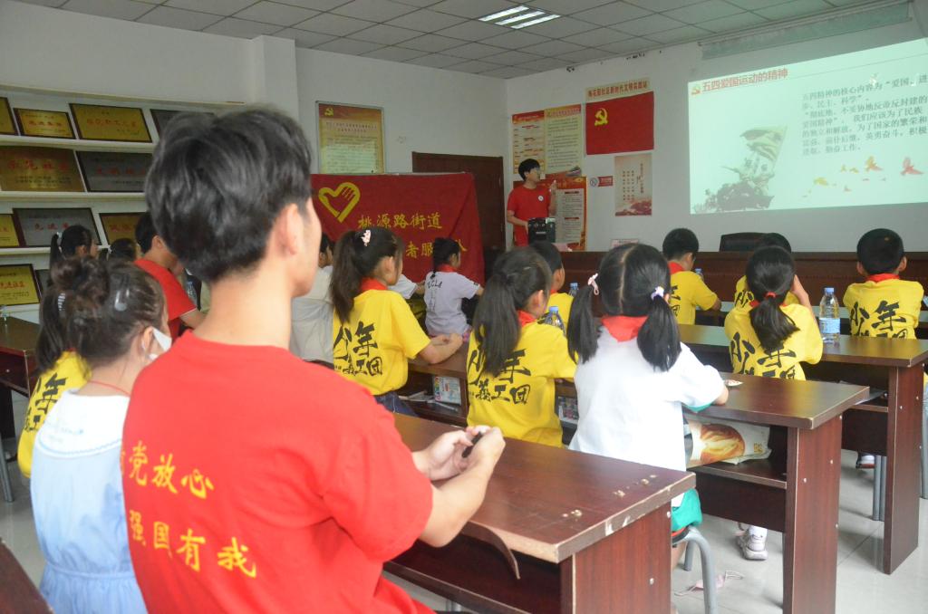 在马鞍山市桃源街道辖区内的各个社区,“童声细语,薪火相传”实践团队开展了“百年团史·青年说”宣讲活动,带领少先队员学团史、知团情,献礼建团百年。活动中,实践队员以理论宣讲、团史故事、知识问答的形式从团的基本知识、发展阶段、历史事件等方面向小朋友们讲述了百年以来共青团奋斗的光辉历程,以图文并茂的形式再现了百年团史足迹。宣讲中重点阐述了五四精神“爱国、进步、民主、科学”的核心内涵,引导少先队员们置身于团史故事中,在新时代中发展自我、发扬艰苦奋斗精神。