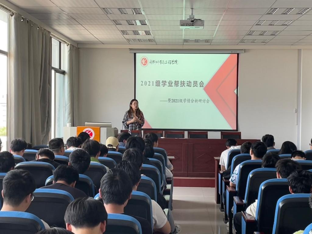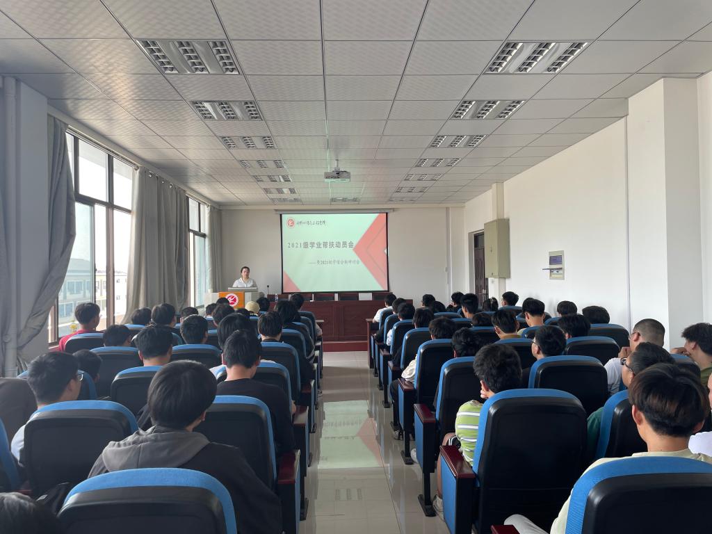 召开学业帮扶动员会暨学情分析研讨会,动员会由21级辅导员张佩佩、王心雨主持,21级学业困难学生、主要学生干部参加。