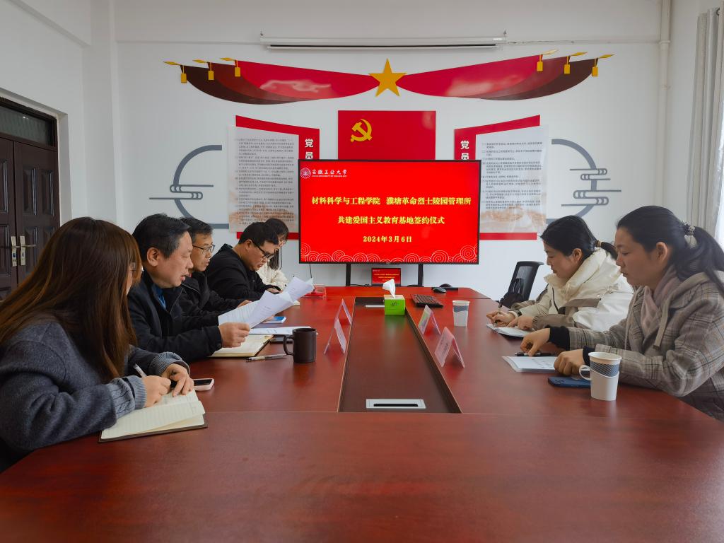 与马鞍山市濮塘烈士陵园管理所共建爱国主义教育基地签约仪式暨“学雷锋”志愿服务对接会在材料南楼405会议室举行。院党委副书记、院长柳东明,院党委副书记、副院长、纪委书记汪盛颜,濮塘烈士陵园管理所所长刘滢以及55足球直播