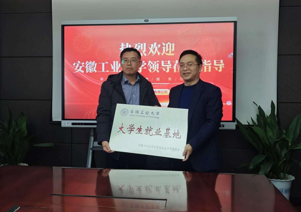 座谈结束后,柳东明向企业授予“安徽工业大学大学生就业基地”牌匾,汪盛颜为肖一军颁发“安徽工业大学就业创业领航导师”聘书。校企双方签订人才培养与就业基地建设合作协议。