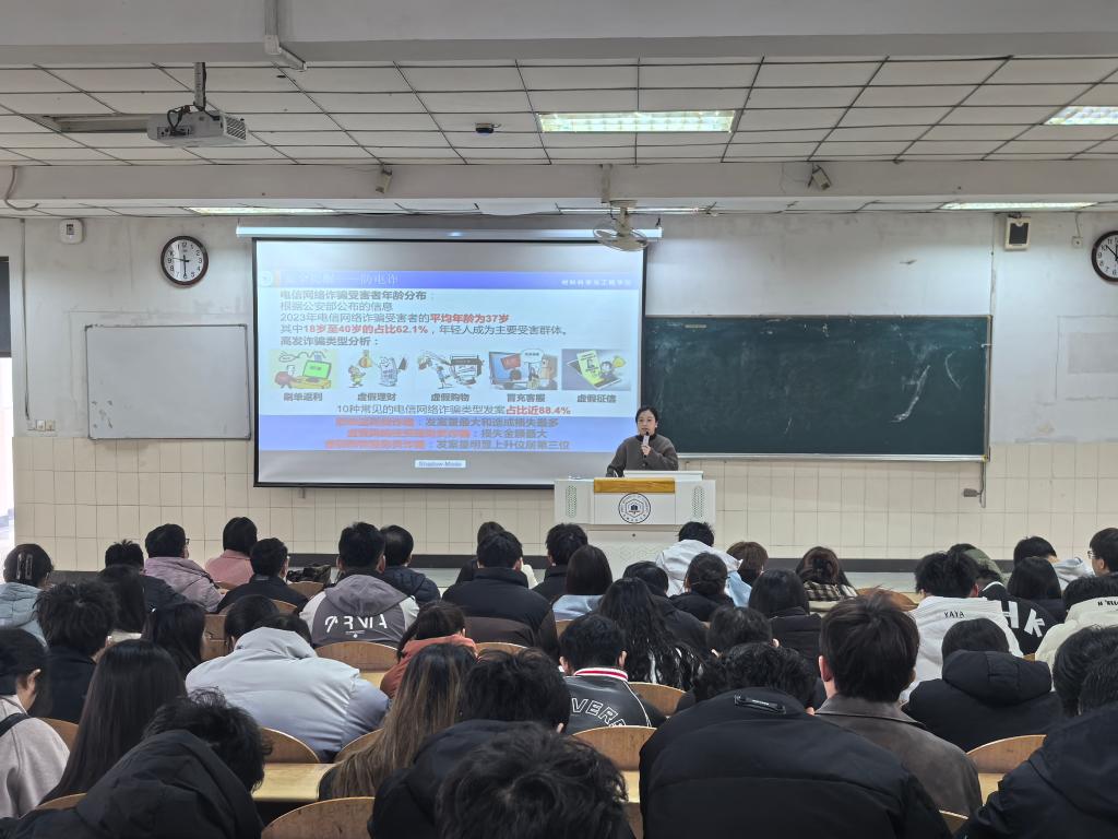 张佩佩围绕日常管理、学业规划、党团教育和校园安全等方面进行了工作布置。辅导员李盼详细解读了《安徽工业大学博士和硕士学位实施细则》,并重申了学校关于研究生日常行为规范、请销假制度等管理规定。张佩佩带领同学们学习了《高等学校预防与处理学术不端行为办法》等文件,结合典型案例强调了学术诚信的重要性,号召全体研究生恪守学术道德,共同营造风清气正的学术氛围。会议还开展了全面的校园安全教育,围绕防范电信诈骗、消防安全、实验室安全、意识形态安全、人身财产安全、交通安全、宿舍安全及饮食安全等方面进行了重点讲解,提醒同学们增强安全意识,筑牢安全防线。全体与会人员共同观看了反诈骗宣传视频。