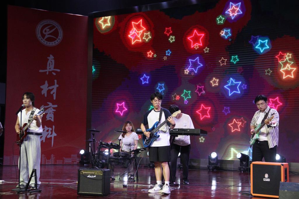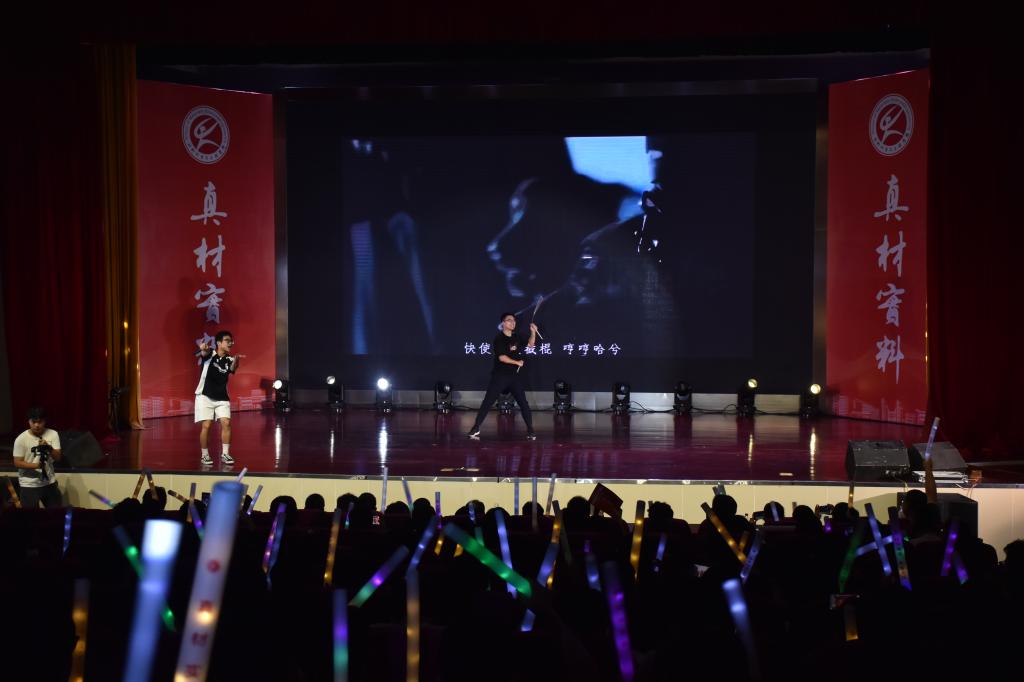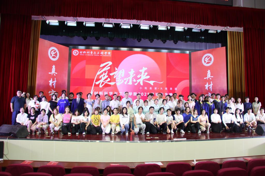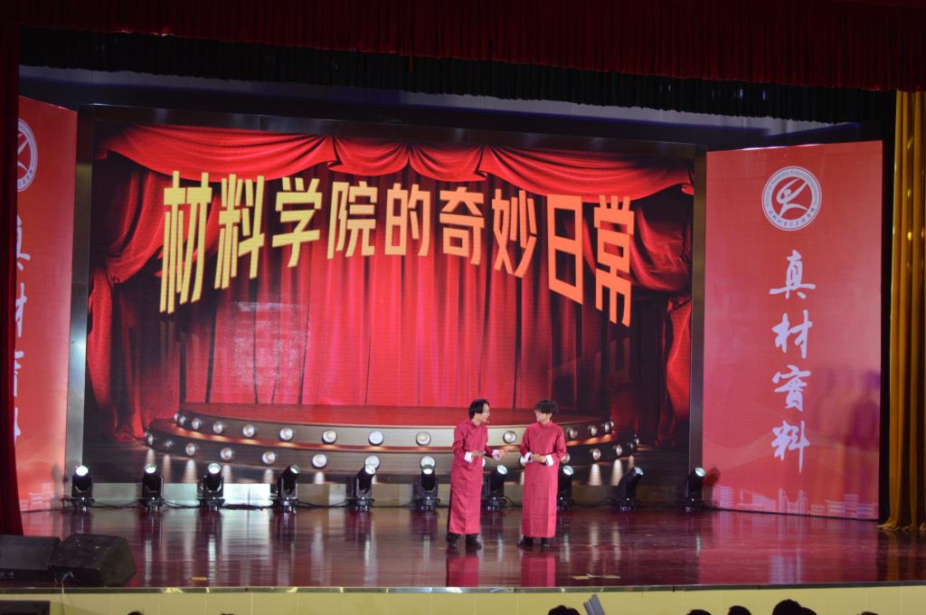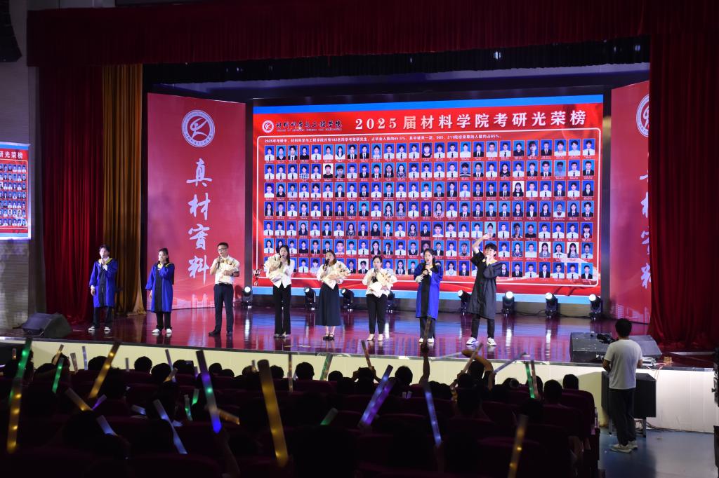 晚会以“青春启航·‘材’华横溢、凝‘芯’聚力·‘材’智飞扬、启梦星程·‘材’智未来”三大篇章为叙事主线,由55足球直播 师生精心策划编排,通过原创剧本创作、舞台美术设计、声光电技术集成等多维艺术表现形式,自编自导自演了十二个原创节目,全景式展现材料学子求学逐梦的成长轨迹,构建产学研融合的育人展示平台。相声《55足球直播 的奇妙日常》以实验室日常为原型,通过幽默诙谐的语言艺术,生动诠释了材料学子在科研攻关中的酸甜苦辣;集体诗朗诵《毕业了,我想...》将个人理想与科技强国战略深度融合,引发强烈共鸣;体育舞蹈《Latin Dance》通过青春灵动的舞姿,展现青年学子昂扬向上的精神风貌;小品《想不出剧本》以排练毕业晚会剧目为蓝本,通过戏剧化手法传递同窗情谊与师长期许;歌舞串烧以流畅的肢体语言演绎出别样风情,唤起了大家对大学时光的点滴回忆,熟悉的旋律在会场中回荡,不少观众轻声跟唱,沉浸在青春的回忆里;……当毕业班辅导员与毕业生代表合唱《凤凰花开的路口》时,全场师生挥舞手中的荧光棒激情互动,将现场氛围推向高潮。晚会通过温馨回忆、深情寄语与多彩节目,为毕业生们留下了难忘的夏日记忆。