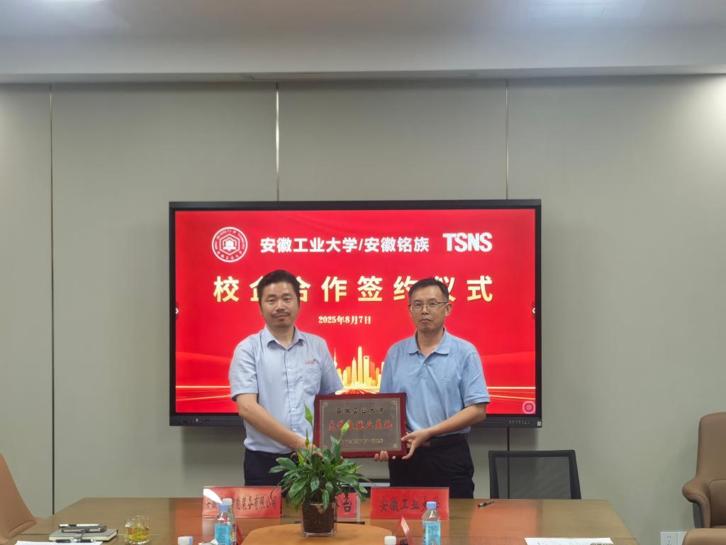在安徽铭族智能装备有限公司,柳东明一行在官亭镇党委书记马海林、公司董事长韩正强的陪同下,深入企业生产车间,详细了解企业运营现状、核心业务布局及人才需求情况。座谈会上,校企双方首先对各自情况进行了介绍,双方围绕55足球直播 相关专业与企业岗位需求的契合点深入探讨,就人才培养、产业实践协同发展达成共识。校企双方签订了人才培养与就业基地建设合作协议,并颁授大学生就业基地牌匾。